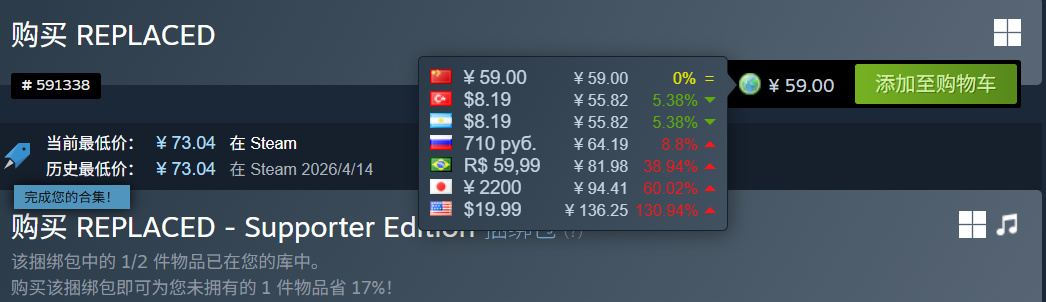 而最让我觉得离谱的是,《REPLACED》很有逼数的定了个独立游戏的价格,国区仅售59元!