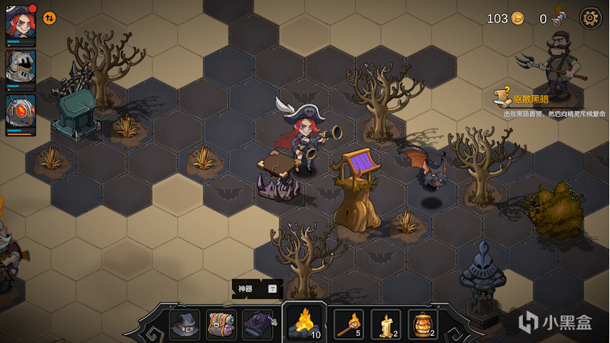 而在我的阵容搭配中,我选择了一套上下限都非常高的阵容:一射手一守卫一刺客,靠着稳扎稳打,我分配好篝火这类资源开荒探索,打打野猪升级再捡点装备,有点实力后就去收割精英怪,在这之前一切都很正常。
