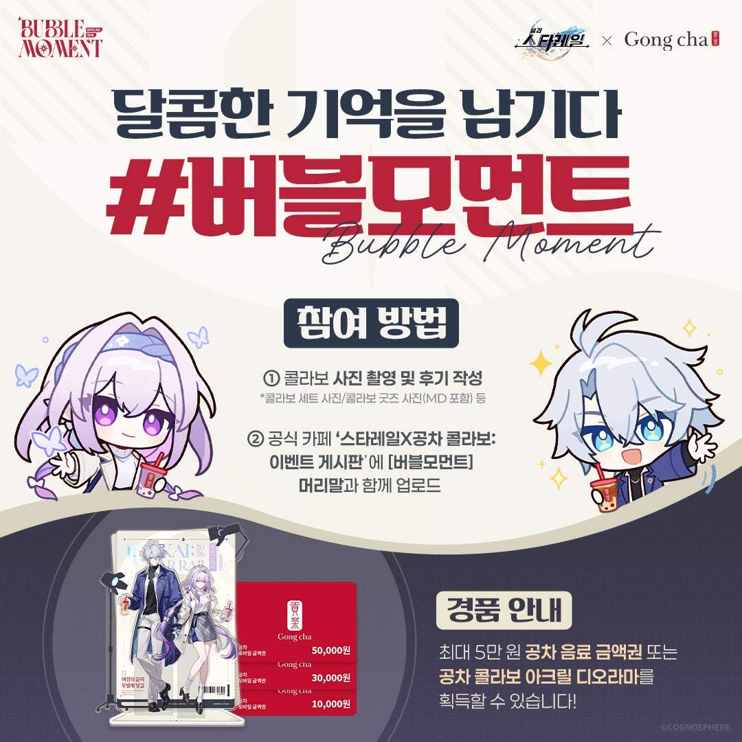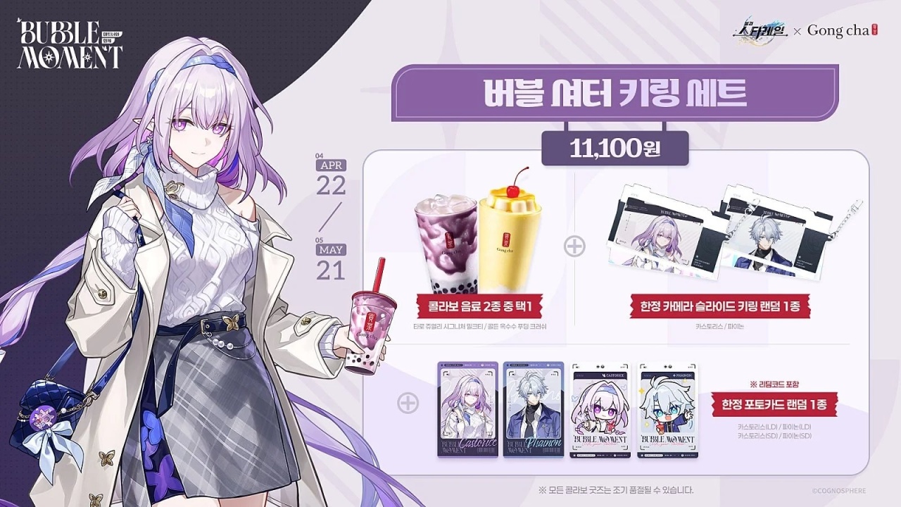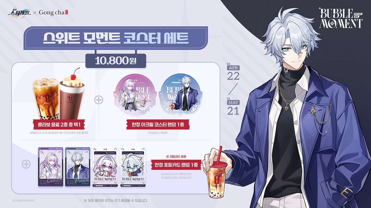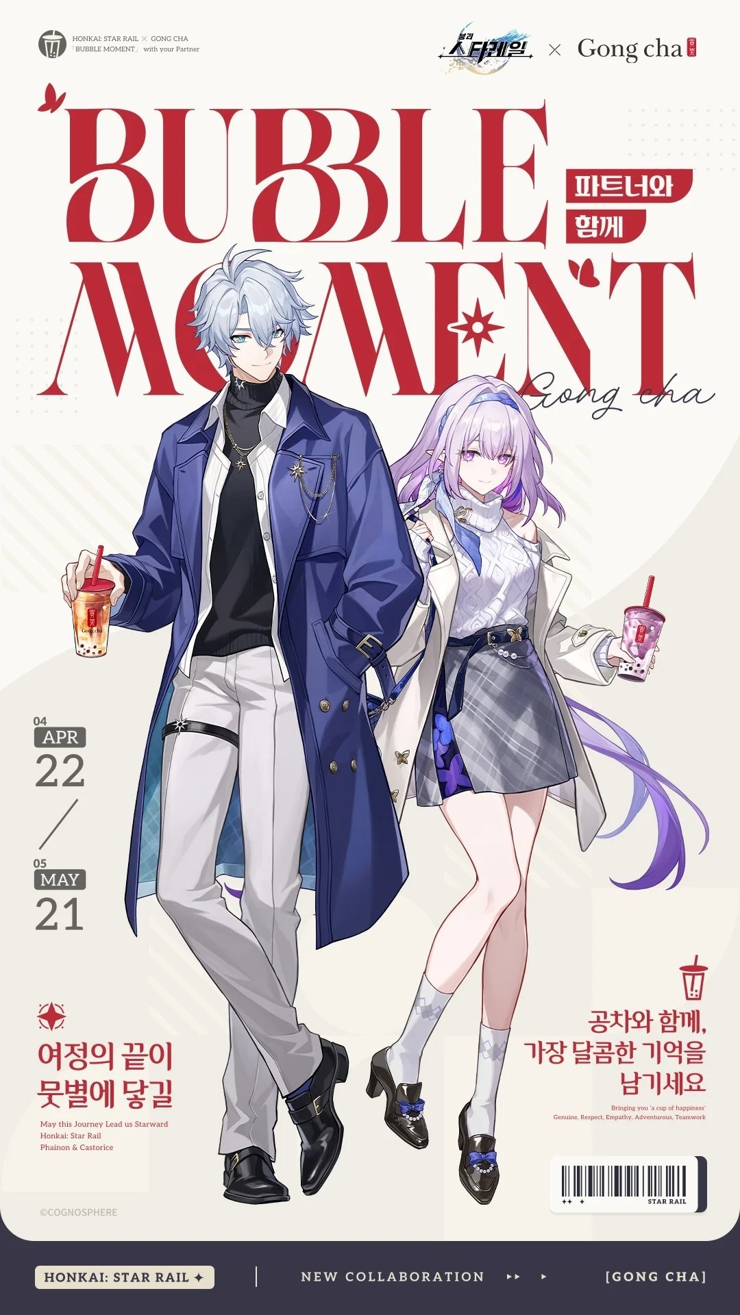 全球娱乐品牌HoYoverse宣布,《崩坏:星穹铁道》与《Gong Cha(贡茶)》的联动活动「BUBBLE MOMENT」将于2026年4月22日起在韩国举办。