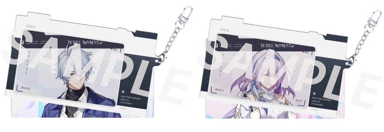 购买套装时,包含2款联动饮品中的1款,可获得「相机滑动钥匙扣」(随机1款)与「附兑换码相片卡」(随机1款)。