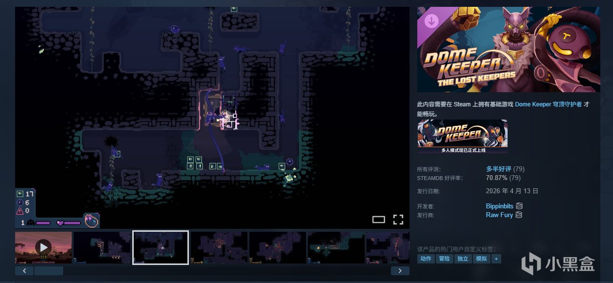 由发行商 Raw Fury 与开发商 bippinbits的90%特别好评的肉鸽挖矿游戏《穹顶守护者》这款近日推出免费多人更新。本次更新现已登陆 PC(Steam)、Xbox Series X|S 以及Windows 平台。本作现在史低折扣中,27.20元即可入手!