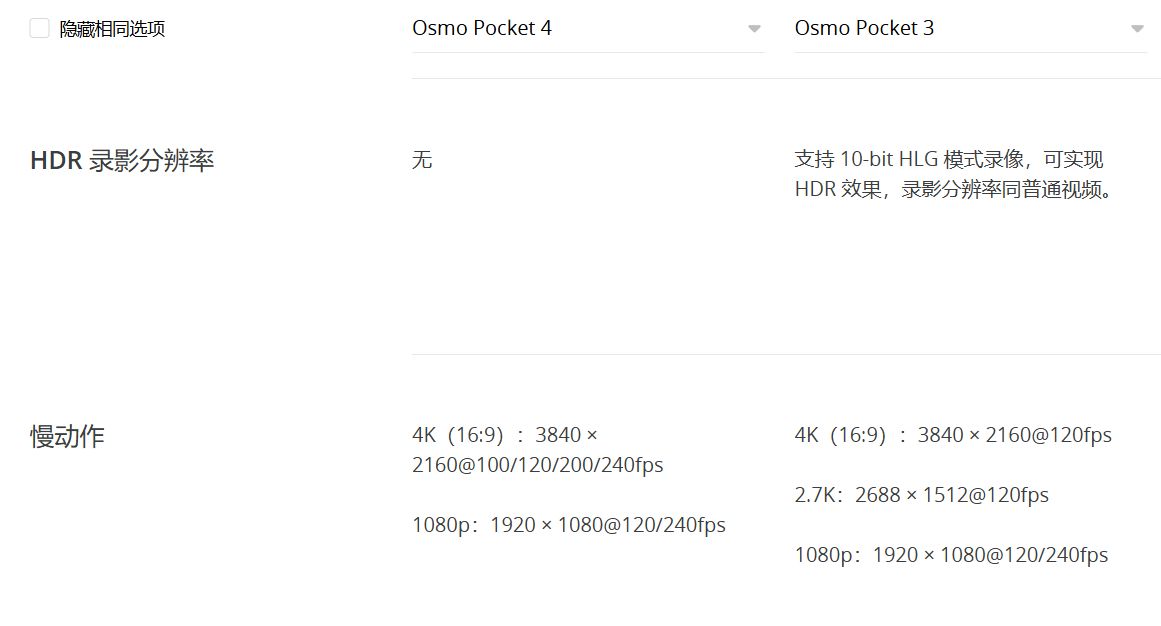 支持4K/60P 和 4K/240P 慢动作,仅支持HEVC编码,不支持HDR录制?