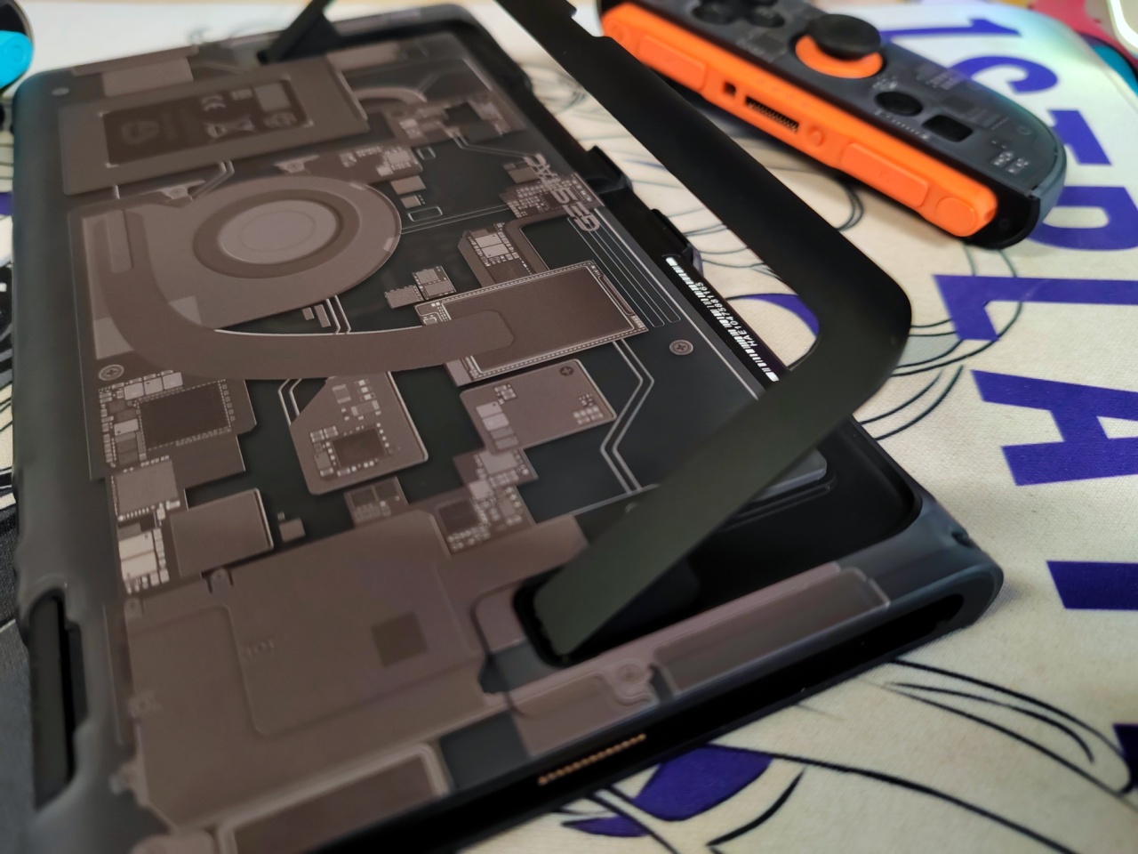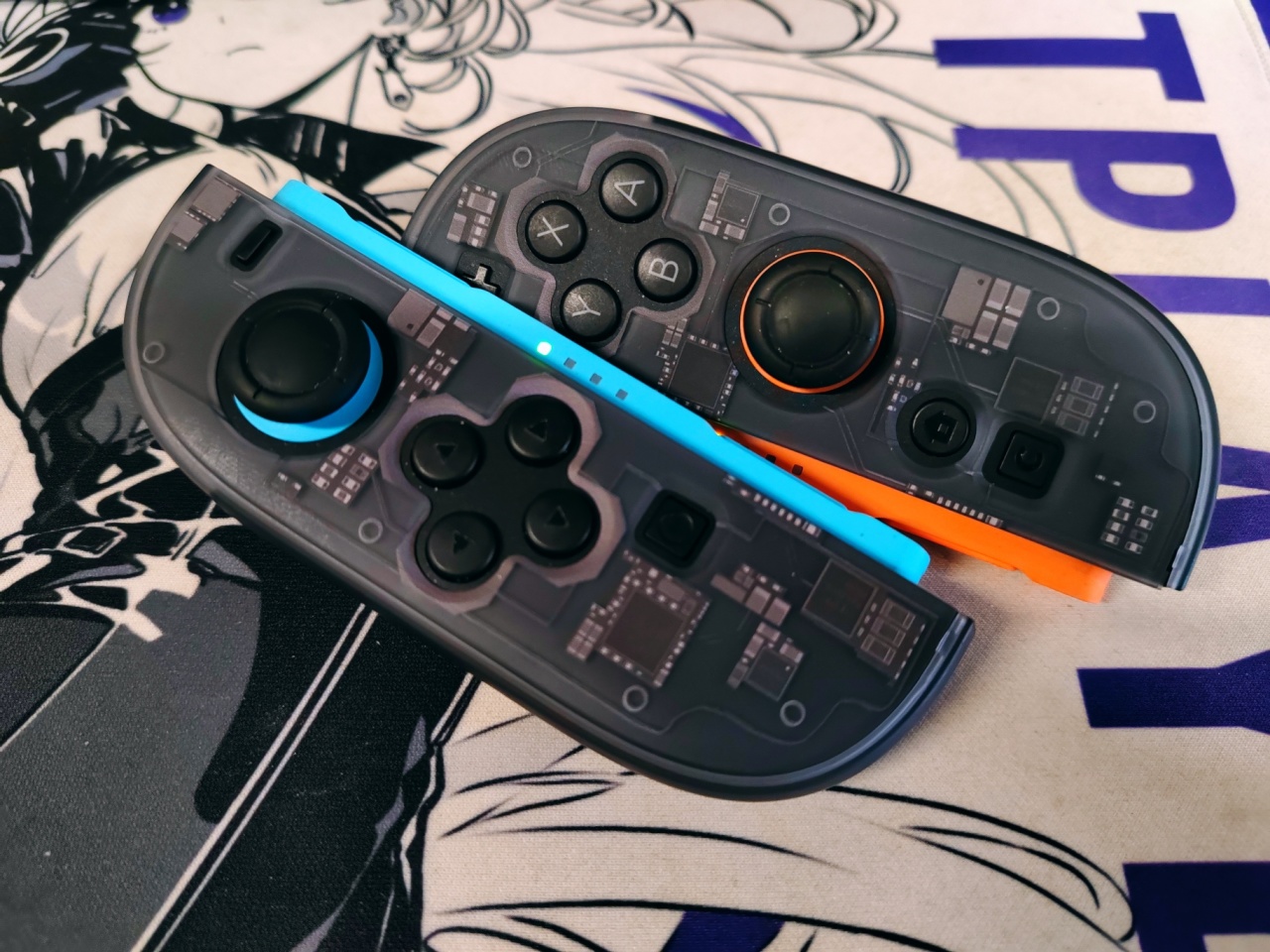 例如Joycon部分分成了上下两部分贴合,机身则是独立成块的保护壳卡槽