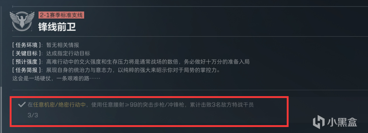 因此这两个任务可以分开来做,第一个击杀干员的任务与披坚执锐2(锋卫前线)组合完成。