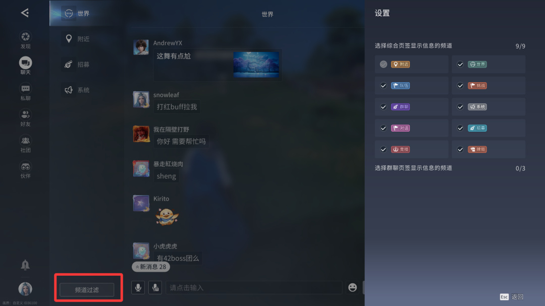 至于有人说聊天框很烦人,键盘F2打开,点击左下角频道过滤,然后取消你不想要的即可。