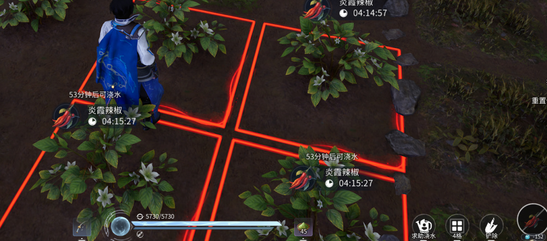 最后说个小细节,种田可以按G键,选择一行一行浇水。