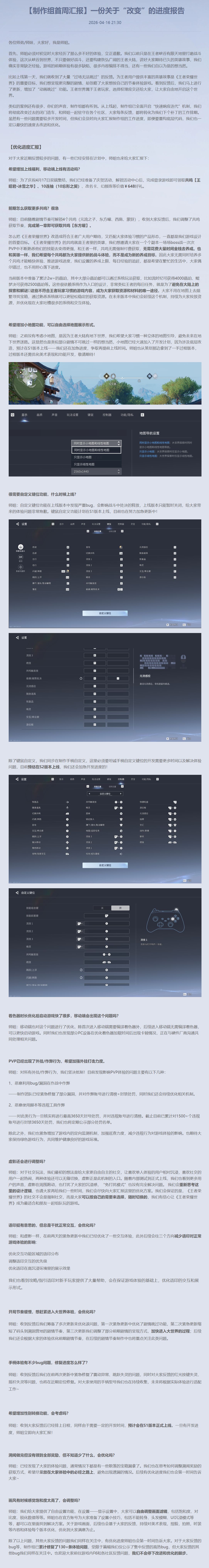 《王者荣耀:世界》制作组现已发布“首周汇报”。