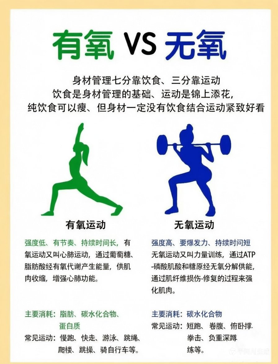 ①有氧运动:每周150~300分钟中等强度,每周5~7天,至少隔天1次(如快走、游泳、骑车)。