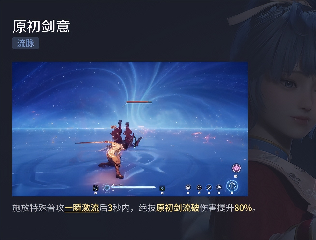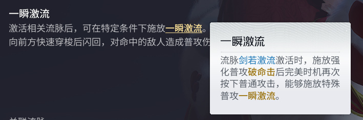 流脉上破命击和一瞬激流有能量获取关系,打出破命击叠加原初印记,再释放一瞬激流该印记会被直接转化为触发命流处决的能量,另外释放三次一瞬激流后下一次打出的一瞬激流会转换为真一瞬激流,大幅度获取命流处决能量并造成高额伤害,另外一瞬激流会给大招提供80%增伤,这一瞬激流收益太高了必须得打。