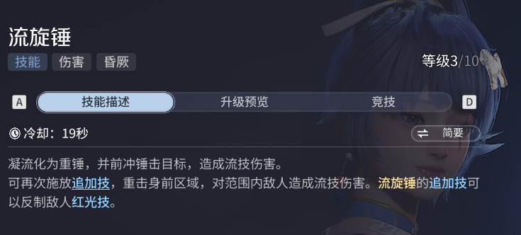 锤技能一段就是普通高伤,二段追击能够反制红光