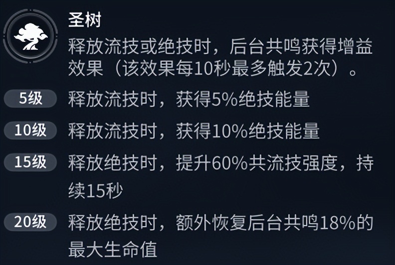 20博学5圣树,博学的巫语颂效果比较契合一瞬激流,大招的无视防御高额伤害也是需要快速充能的。