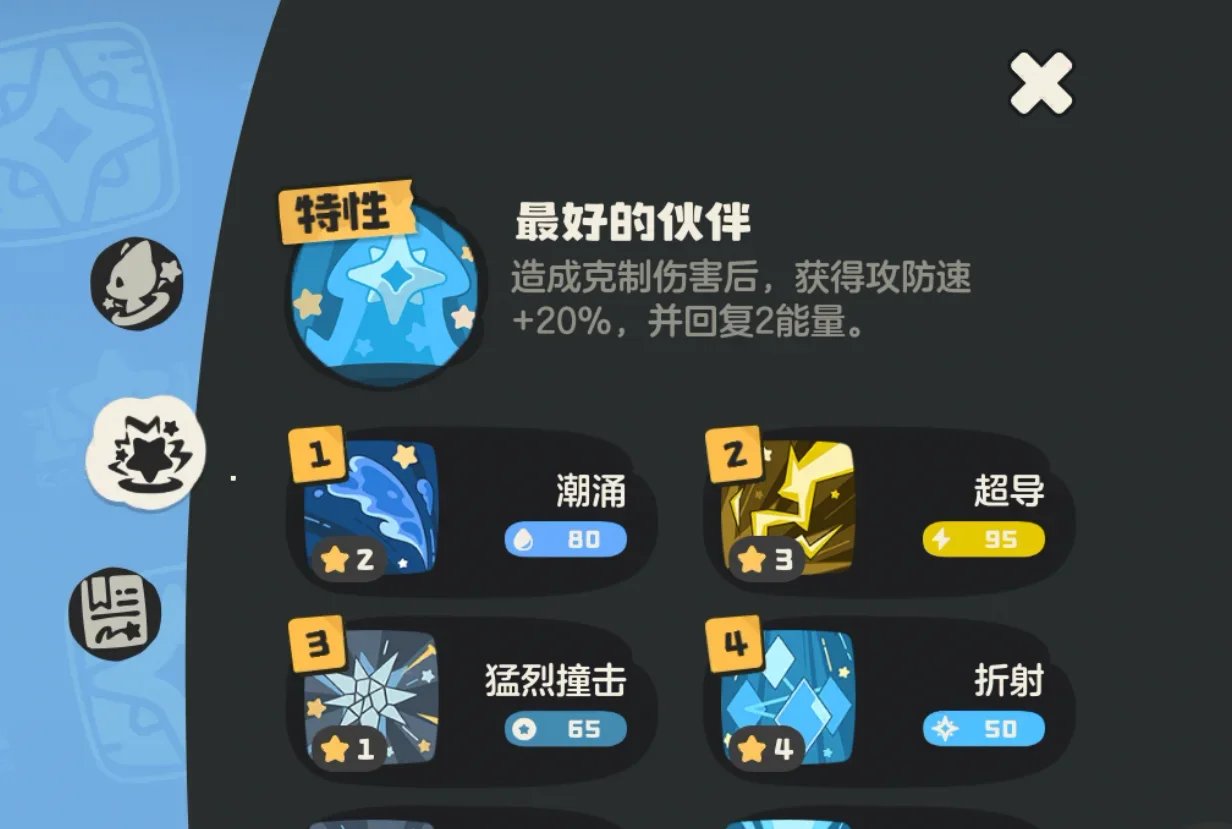 只需要水+普通+折射,一直无脑按折射就可以了,如果练度较低可以更改为恶血脉,这样折射就有吸血属性了