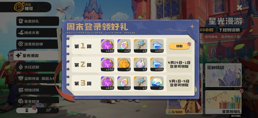 然后是他的星光休憩,和每日晚间的一样(不过全天开放),传送到对应位置挂机即可