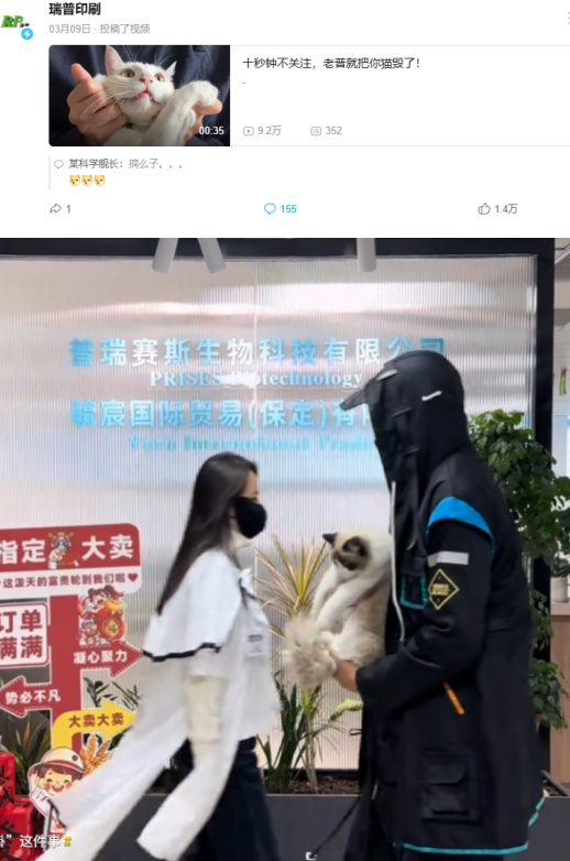 单拿一个《明日方舟》举例,就有“瑞普印刷”“普瑞赛斯生物科技”两家公司,和其中的角色“普瑞赛斯”撞名。面对闻着味过来的舟批,他们也在宣传短视频里掏出了神秘兜帽男、赛博女鬼、舍利子哈基米这个铁三角羁绊,让舟批直喊“搞么子”。