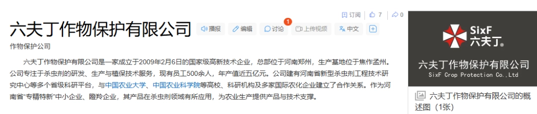 六夫丁作物保护有限公司,明面上是一家总部位于河南郑州,专注于杀虫剂研发、生产与植保技术服务,与多个高校及科研机构合作的农药公司。