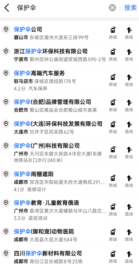 随便打开某个地图软件一搜,你就会发现,名字叫做“保护伞”的机构,那是位于五湖四海、各行各业,就没有你想不到的。