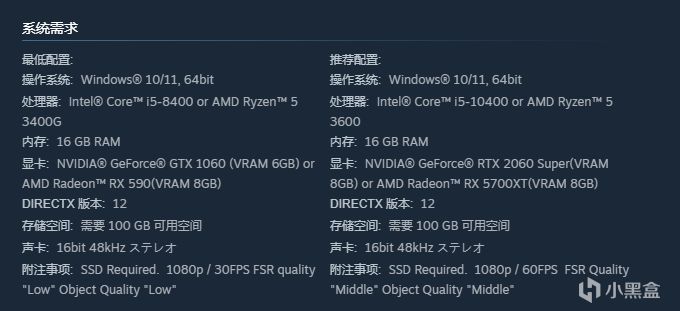 然后是游戏配置需求,大家可以参照一下: