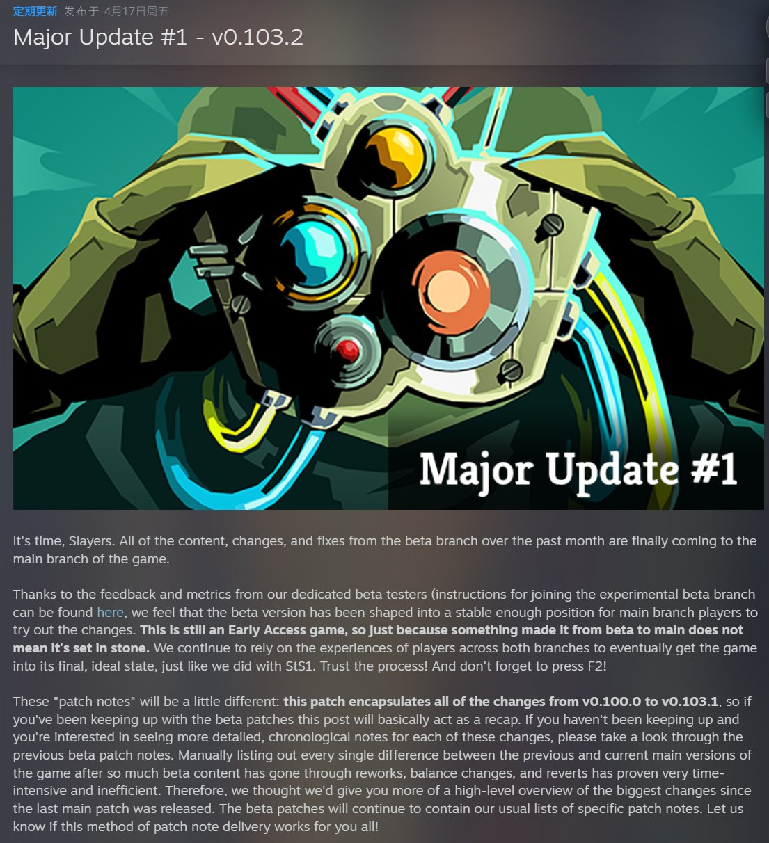 感谢各位忠实测试玩家的反馈与数据(测试服加入方式可在此查看),我们认为当前测试服版本已足够稳定,能够让正式服玩家体验这些改动。本作仍处于抢先体验阶段,因此即便内容从测试服上线至正式服,也不代表最终定型。我们仍会持续参考双服玩家的游戏体验,逐步将游戏打磨至理想的最终版本,一如我们制作《杀戮尖塔 1》时那样。相信这个过程!别忘了按 F2!