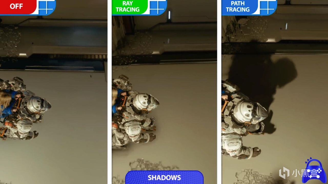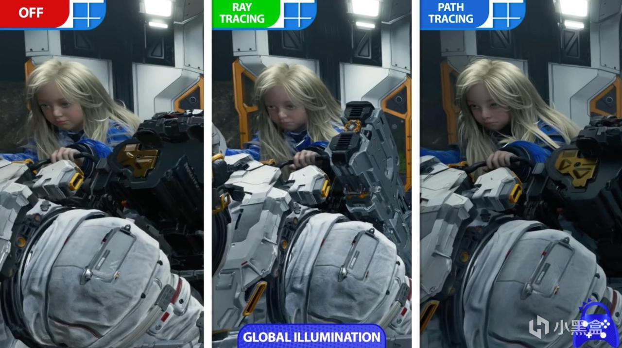 实测结果显示,光线追踪在某些场景中表现得更接近基础画质,而路径追踪则带来惊艳画质提升:所有表面均实现了真实反射,而非仅限于特定材质。极致全局照明涵盖了所有类型的光源及发光颜色,阴影表现更细腻精确。开启路径追踪时,英伟达的光线重建技术会自动启用。