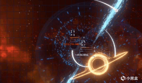 被喷流扫中的目标不需要先进入你的引力圈中心,也不需要发生传统意义上的近距离吞噬,它们会被远程撕开表层结构,大量蓝色质量粒子被直接打散、打落,开始向你的引力中心坠落。