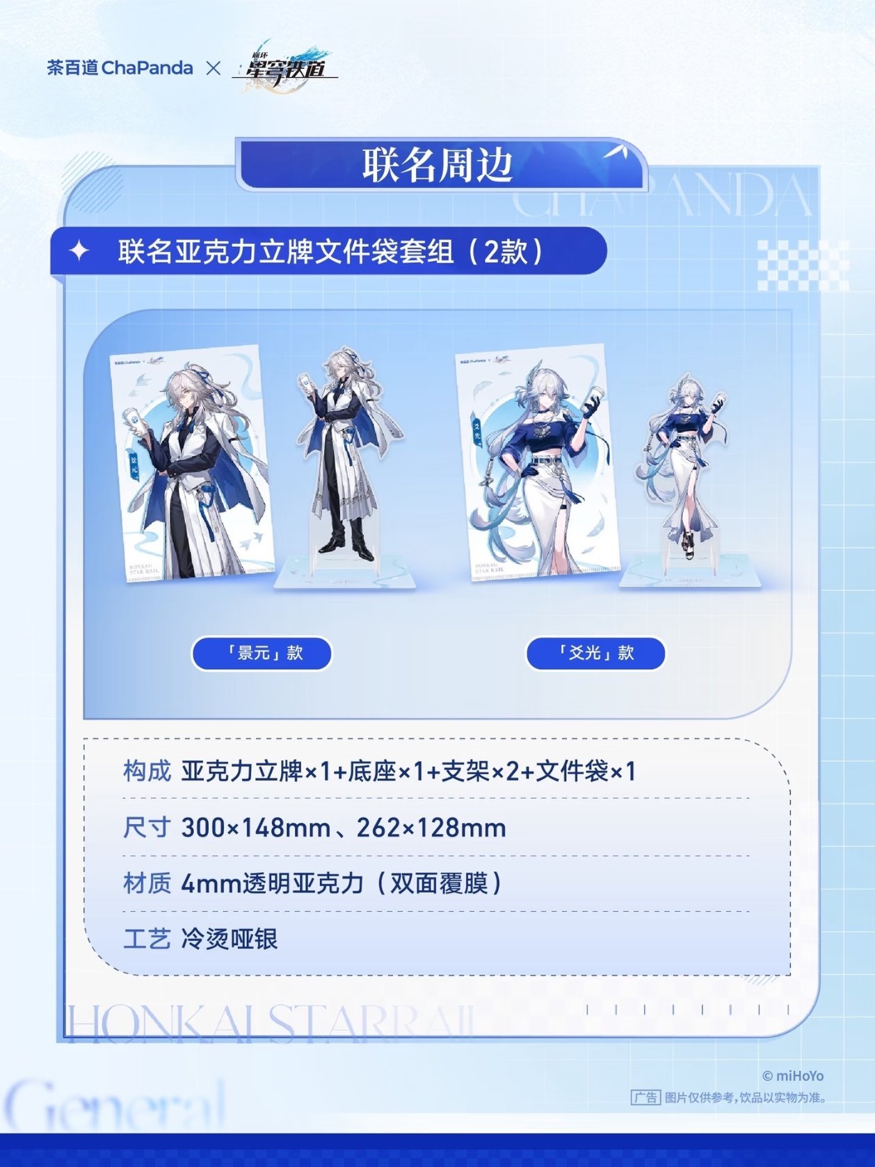 联名亚克力立牌文件袋套组仅限「茶百道饮品点单小程序」换购,单笔订单限购2份(角色不可重复)。