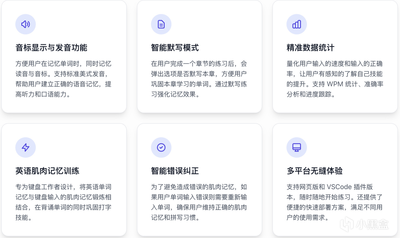 你在打字的时候,会同时接触到单词的拼写、发音、释义,网站也会实时反馈你的输入速度和正确率。