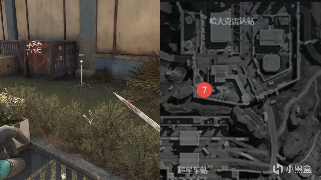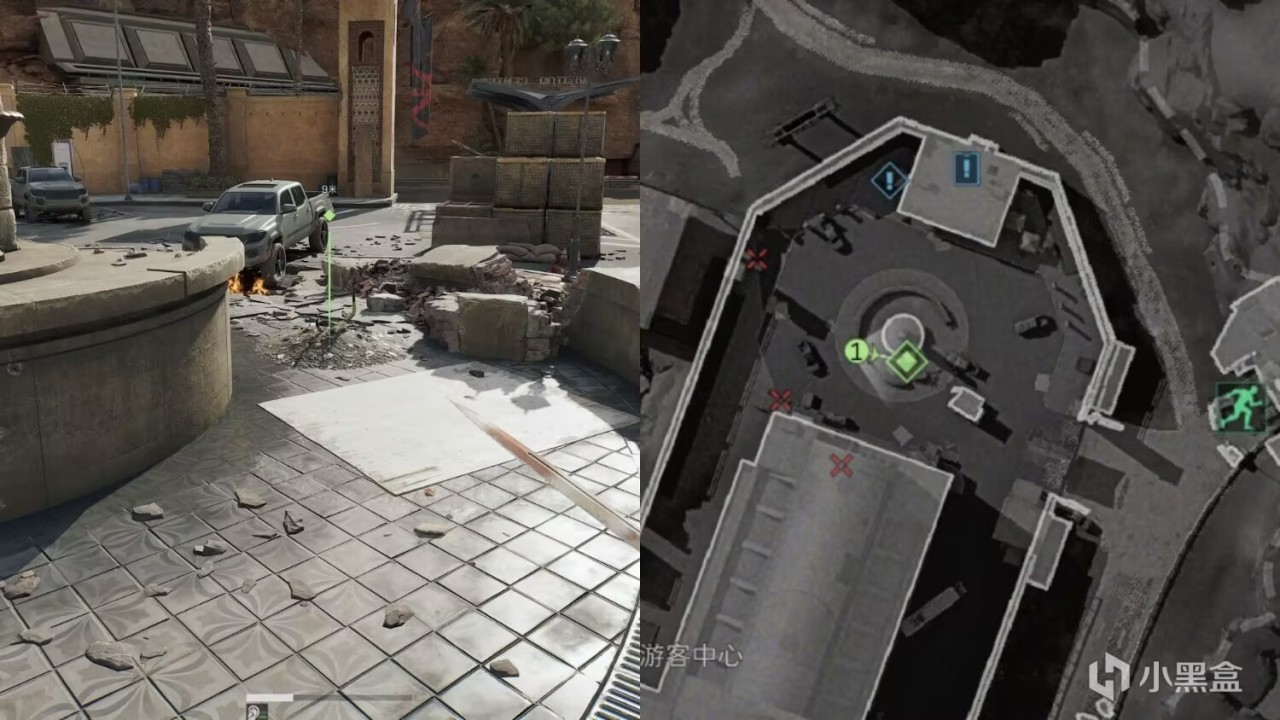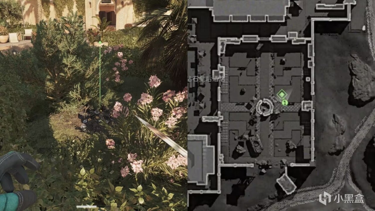 3、酒店下方坦克缺口进去,喷泉右前方花坛内