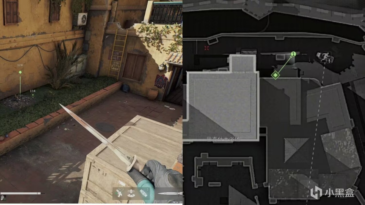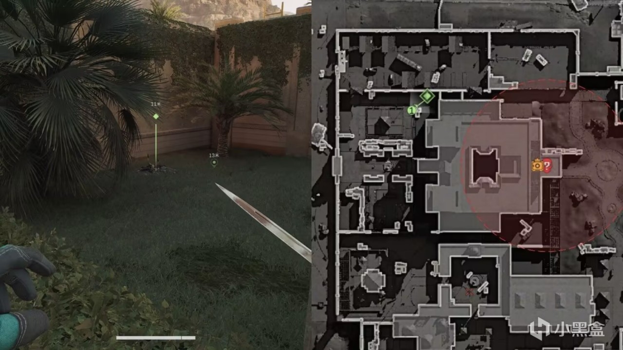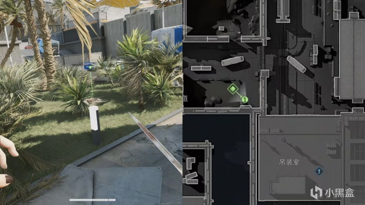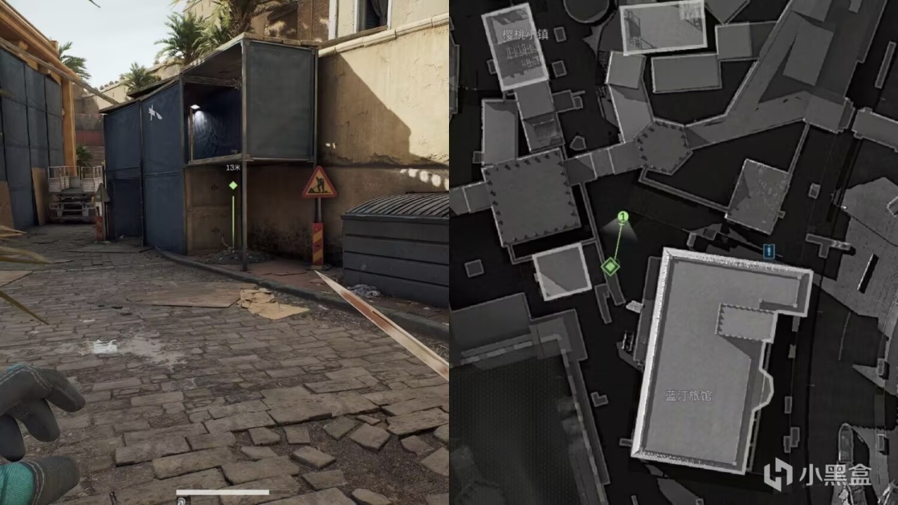 3、酒店下方坦克缺口进去,喷泉右前方花坛内
