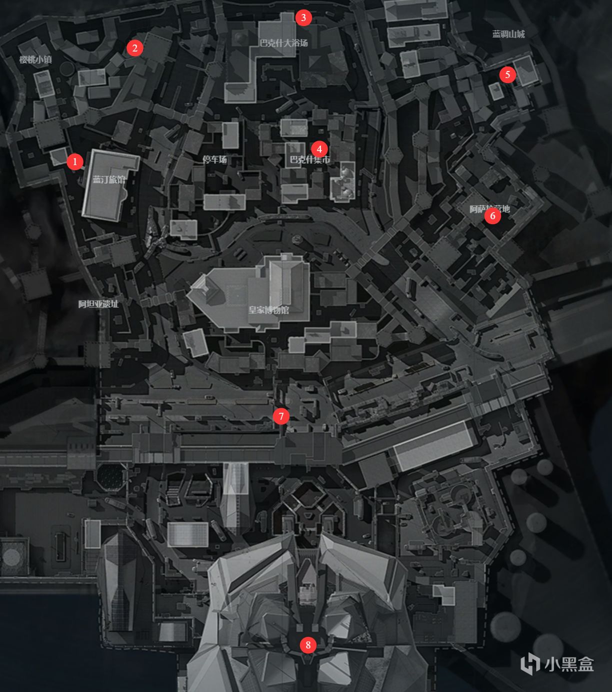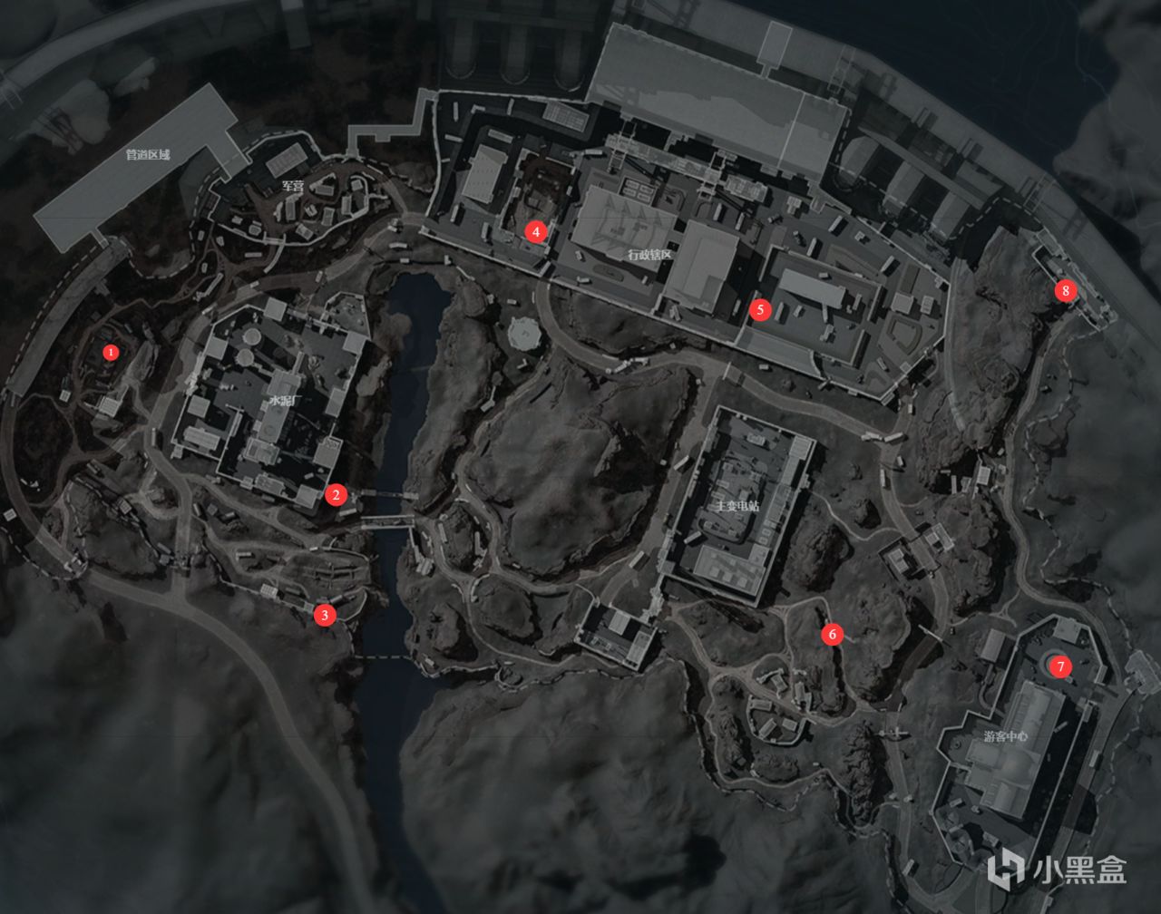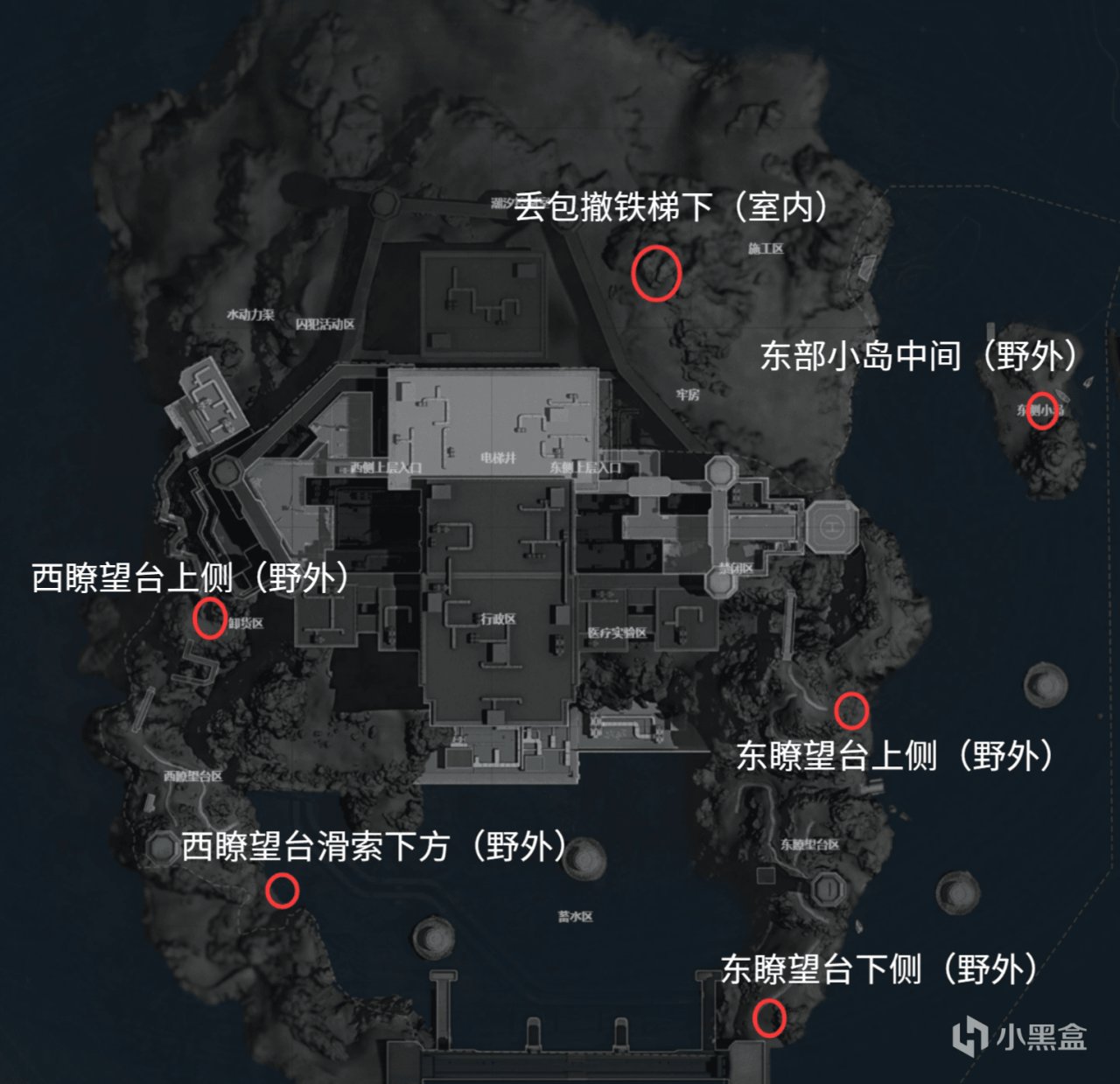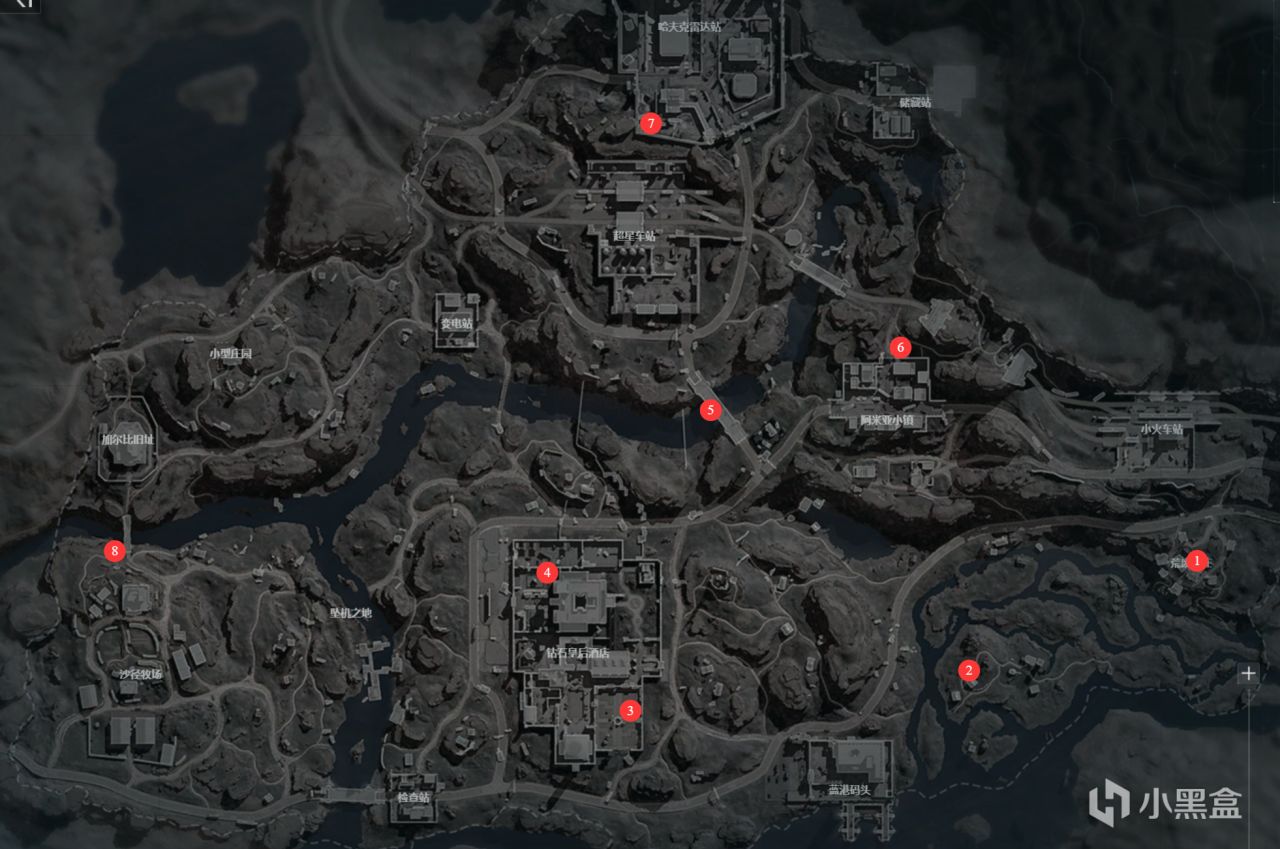 藏宝堆零号大坝有8个、长弓溪谷8个、巴克什8个、航天基地7个、潮汐监狱6个