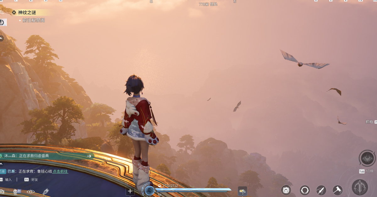 先说长板,你就得先认识到王者荣耀世界它是一款网游,世界这画风跟王者基本是一脉相承过来的,人物画风基底搬到大世界上融合的其实挺不错的,带上虚幻引擎和优质的大世界设计和抠了很久的光影效果,刚进游戏的画面体验画质体验真没得喷。王世界刚开始就贴在左下角的世界频道和人物虚影也强调了是更偏向网游偏向MMO这个方向,啊当然世界频道在左边碍眼这个事要扣分是没问题的,尤其是每次过完剧情都要弹出来又得最小化窗口确实很烦。