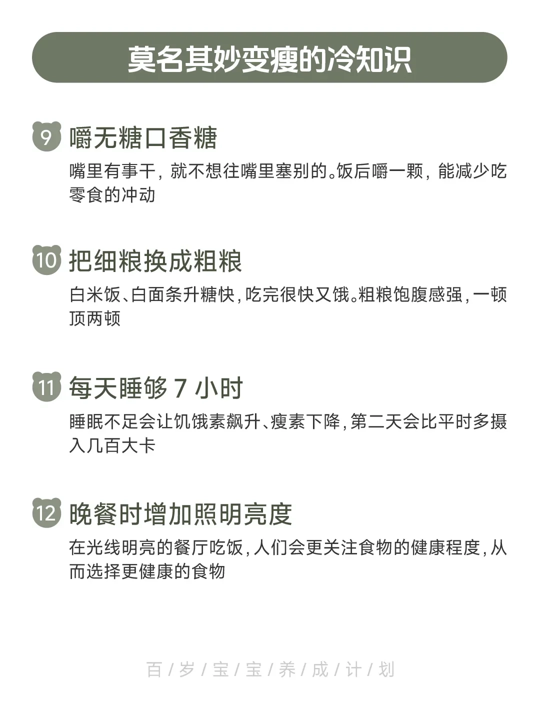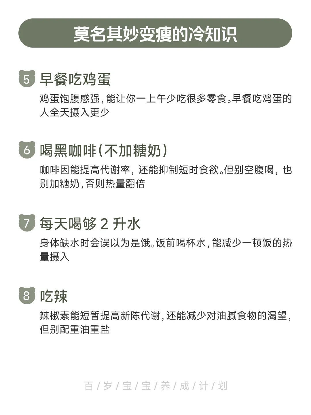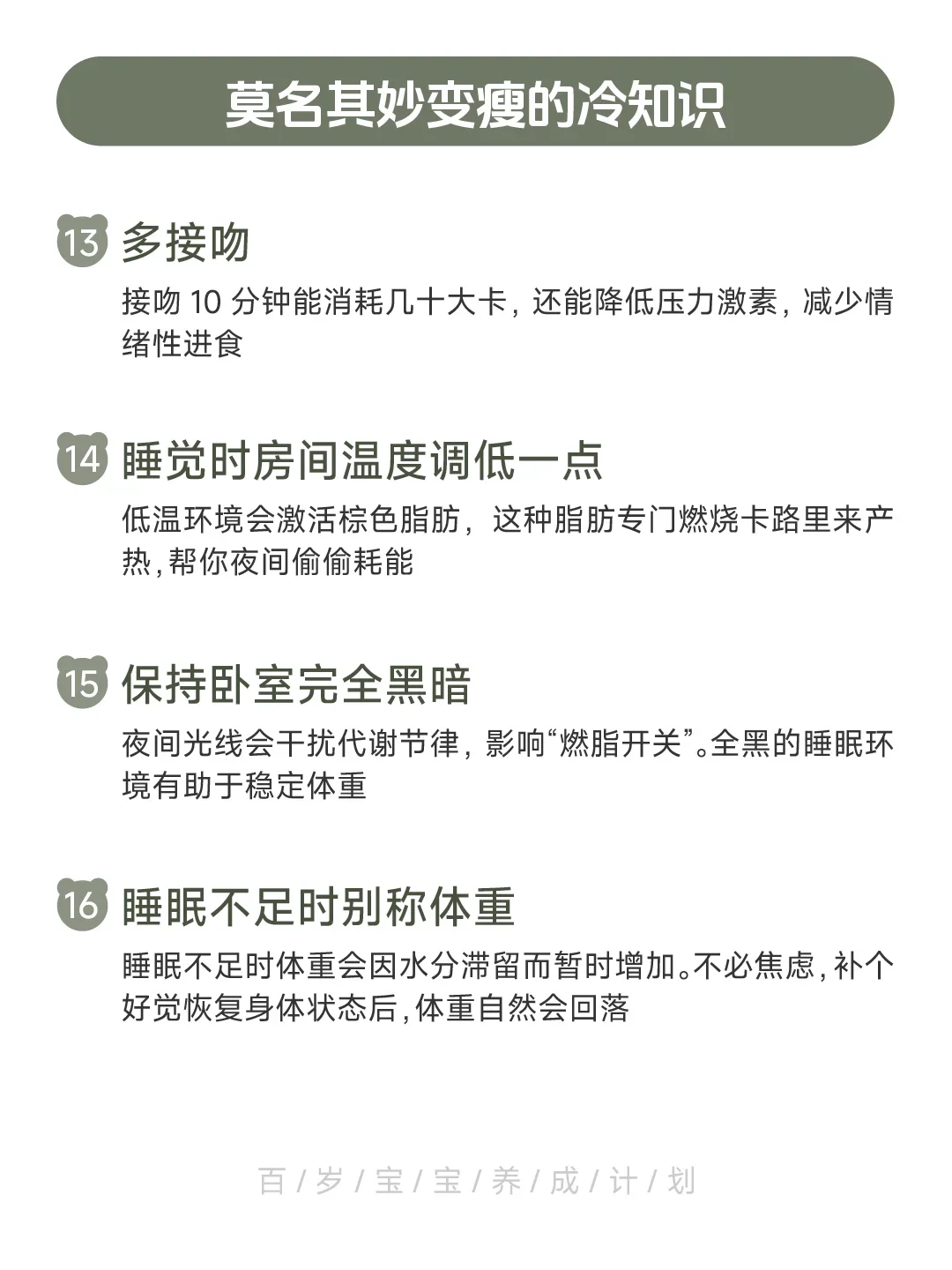 这些冷知识,每一个单独拿出来效果不大,但叠加起来就厉害了。不用全做,选3-5个你觉得最容易坚持的,一个月后你会回来谢我。