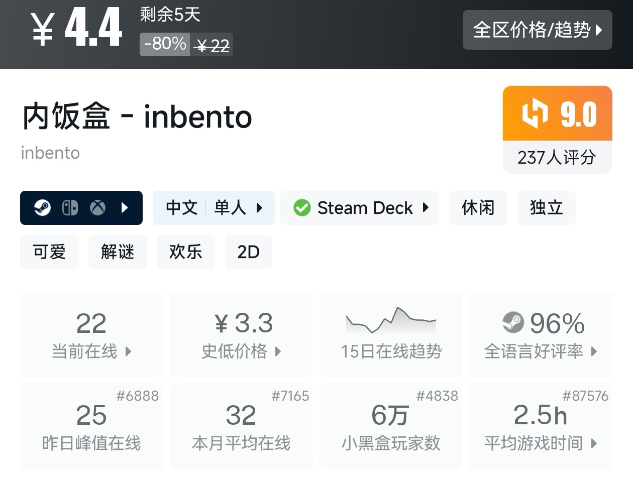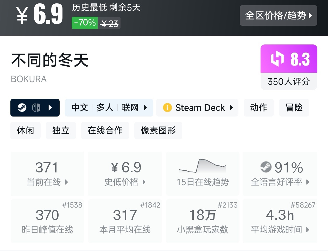 大家好,没错,又是我,你们的老朋友亦然,在最近,有很多游戏都迎来了折扣,当然,其中就有很多个位数的游戏,不仅具有很高的性价比,有很多游戏还拥有很高的评价,甚至其中还有很多游戏在史低和新史低,有些用盒币抵扣还能更低,并且最近还有支付宝的活动,我将为各位进行一个汇总,希望我的汇总,能够帮助各位盒友挑选心仪的游戏。