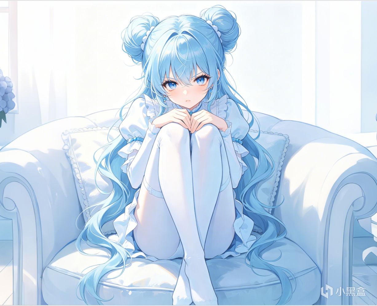 一头蓬松的冰蓝色长卷发,总是扎成两个高高的丸子头。