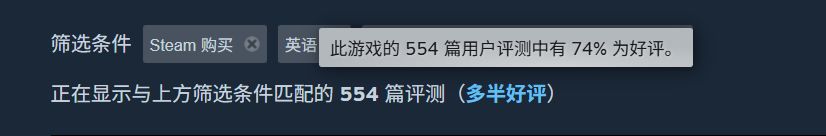 那么是只有中文玩家如此愤怒吗?显然也不是,咱们切换到英语区,虽然评价人数少了一大截,但是当日好评率只有74%,而其总体好评则是「好评如潮」——你只能归结于文化差异,它们大部分玩家不会用差评来表示不满,但不代表它们对这个更新就感到满意了。