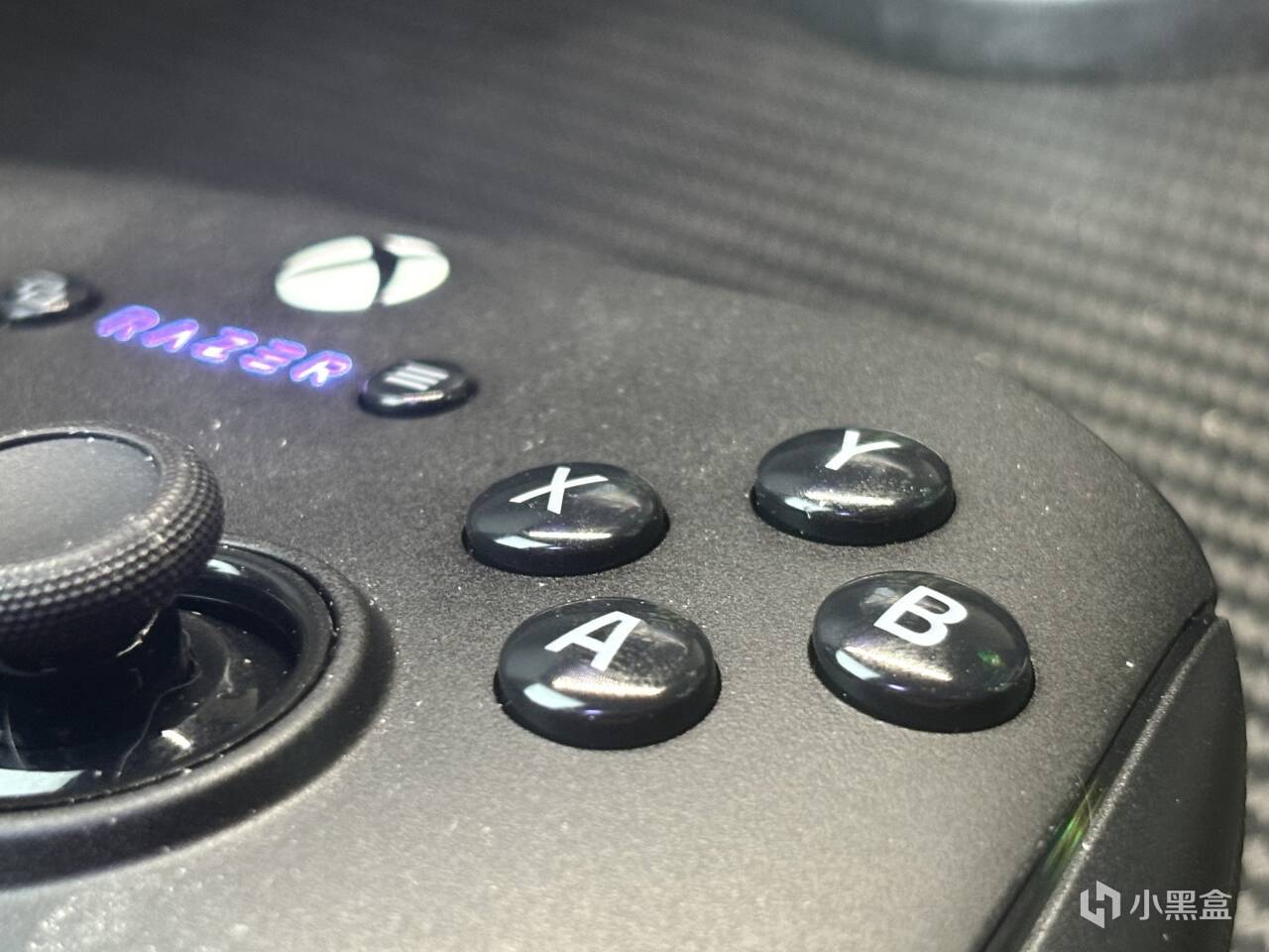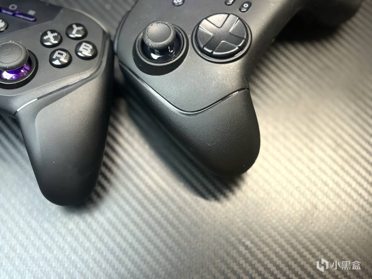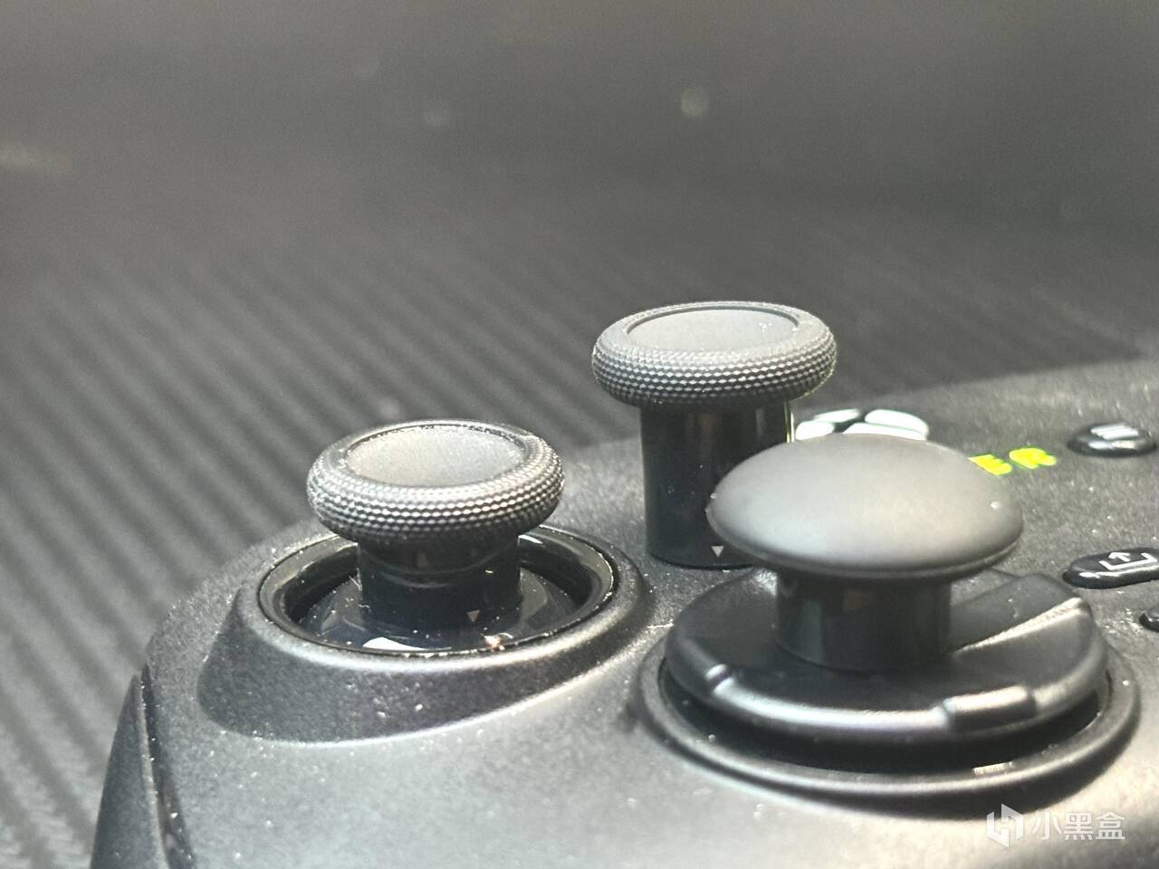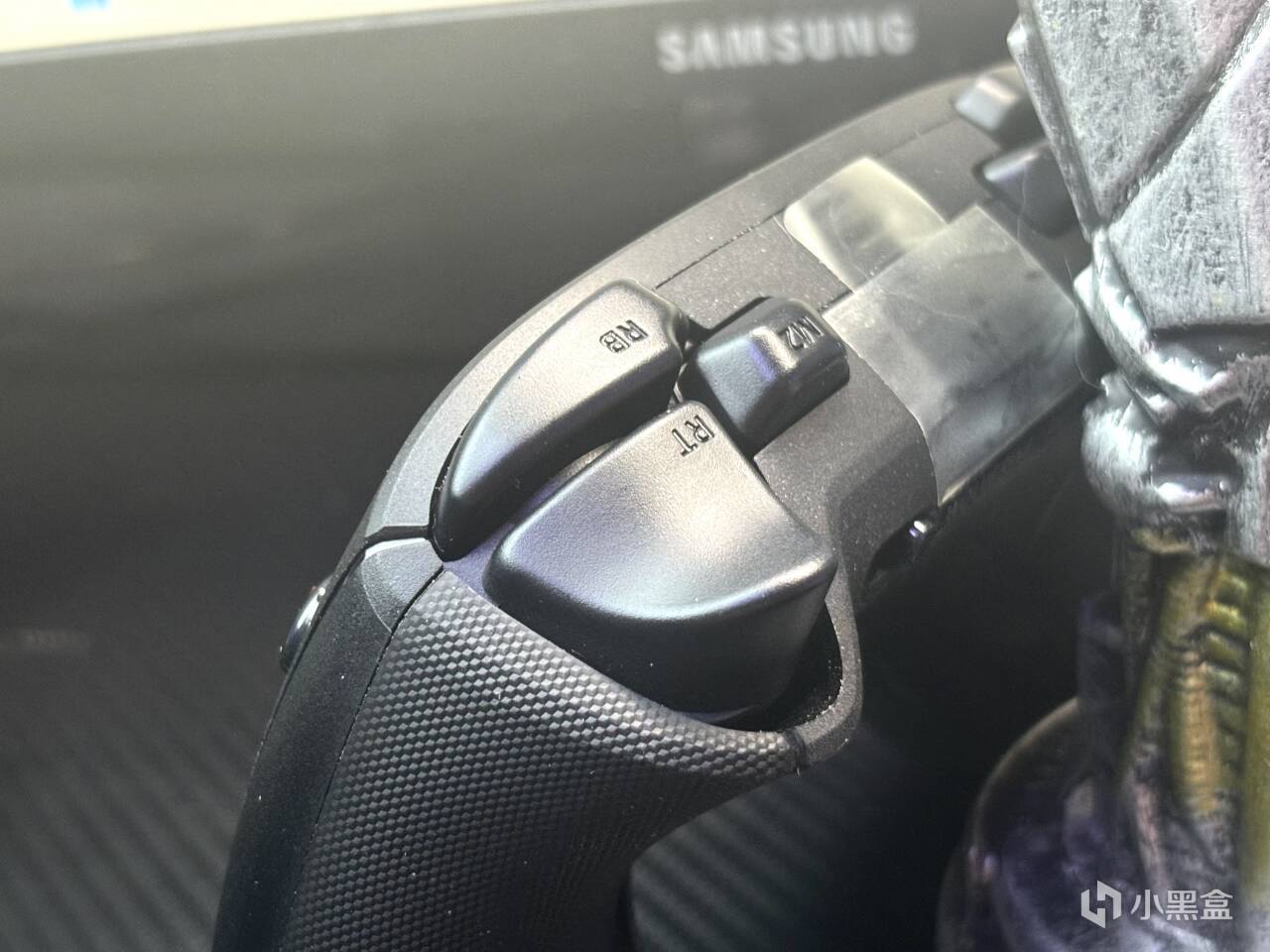 而在肩键这一块,除了标准的两个肩键之外,还额外准备了两个小的肩键,可以通过驱动进行功能映射,对于很多键位较多的游戏还是很友好的,而且触发速度很快,反馈感也很强。