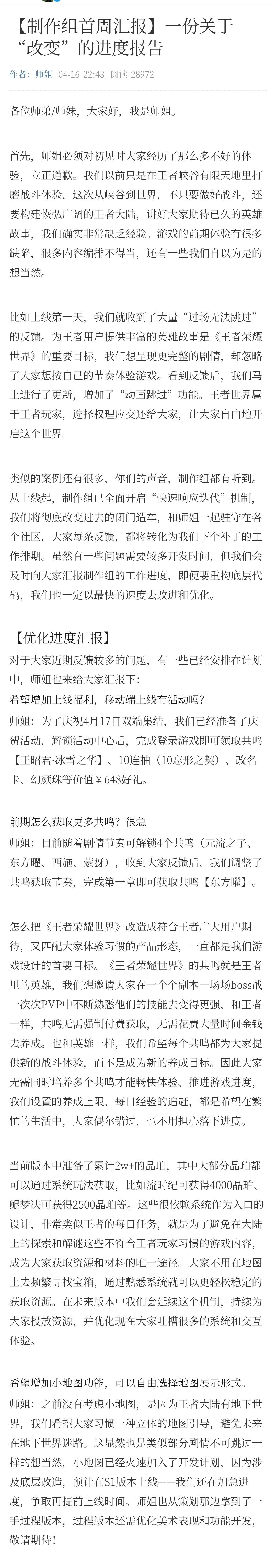 这份报告的诚意是实打实的,至少比很多游戏“装死三个月再偷偷上线补丁”强多了。它暴露了天美在开放世界赛道上的“新手村”阶段:战斗系统是强项,世界构建和玩家体验细节是短板。