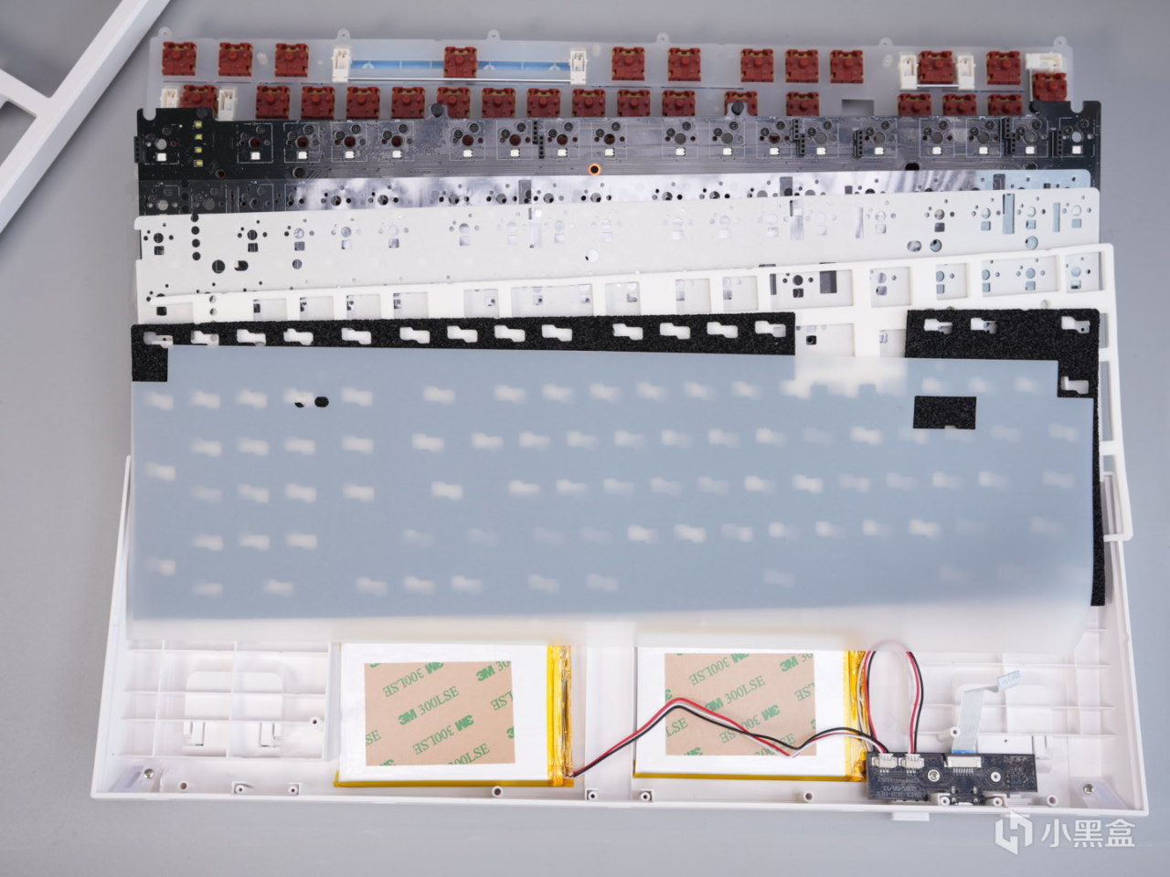 夹棉:采用白色poron材质的来进行吸音,加上一张PET声优垫。