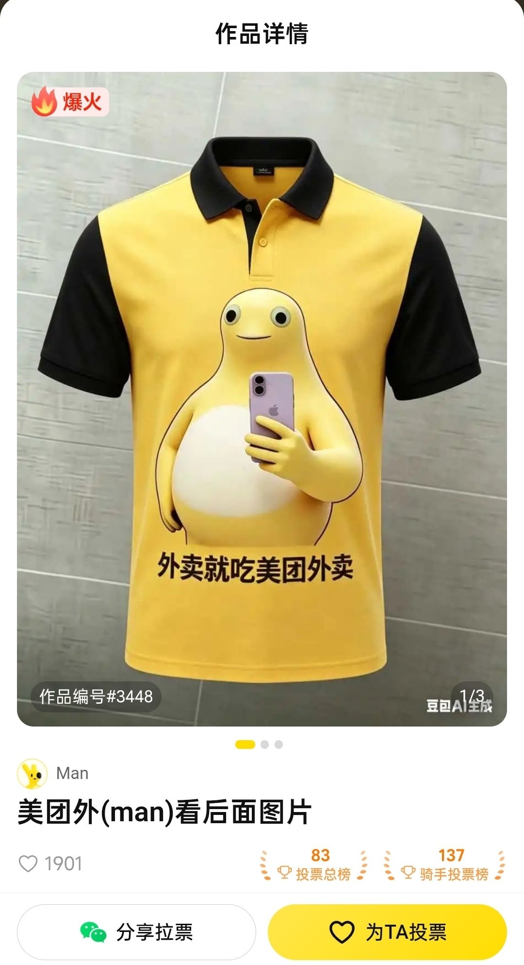 作品上传期为4月10日—30日,用户可通过美团APP搜索“黄衣服”参与投票。