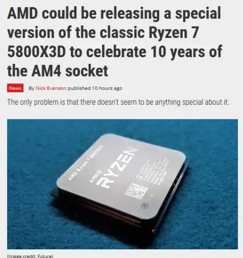 AMD 計劃於 2026 年Q2重新發售銳龍 7 5800X3D 處理器,以紀念AM4 平臺發佈十週年。該處理器最早於 2022 年 4 月首發,是 AMD 首款搭載 3D V-Cache 技術的消費級 CPU,通過額外堆疊 64MB L3 緩存大幅提升了遊戲性能。