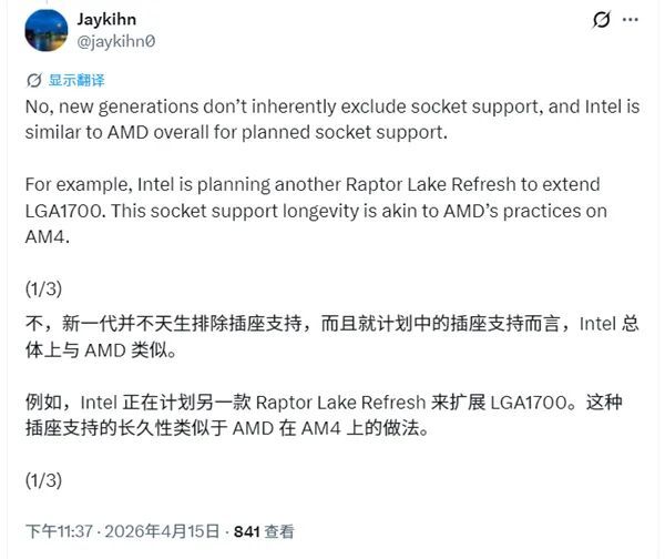 Intel 計劃在 2027 年初再次推出 Raptor Lake Refresh架構的新CPU,屬於是LGA1700 接口從2021年第一次推出12代酷睿以來的第三次產品迭代。LGA1700 平臺的實際生命週期將延長至近 7 年。