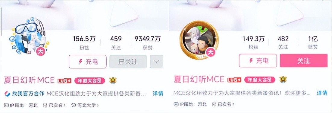 夏日幻聽MCE即使一度從150萬關注跌落了幾十萬,但現如今,粉絲量又重新回到149萬——一如他當年曾經滿身黑料擊潰英梨梨字幕組一樣,他現在仍是B站最大的新番資訊字幕組。