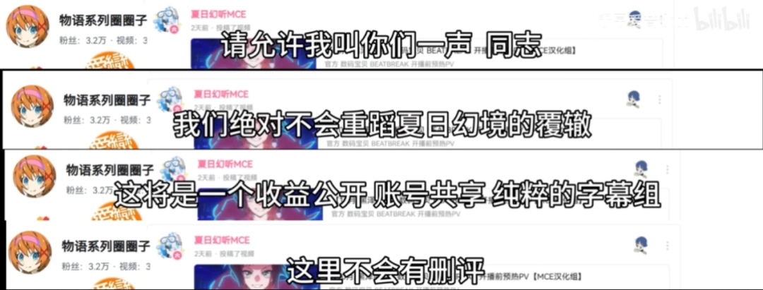 按照大衆的認知,漢化組一向以“爲愛發電”著稱,觀衆也理所當然地認爲夏日幻聽MCE不過是一個體量龐大且無私奉獻的羣體。