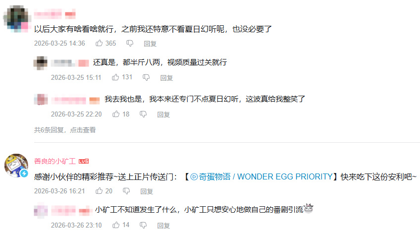 這個賬號坐擁百萬粉絲,是國內新番資訊領域當之無愧的頭部UP主。它總能在第一時間搬運並翻譯最新動畫PV、製作決定、小劇場等資訊,可以說是大多數動畫觀衆瞭解新番的最佳途徑,而在這個賽道里,夏日幻聽MCE幾乎沒有平替。