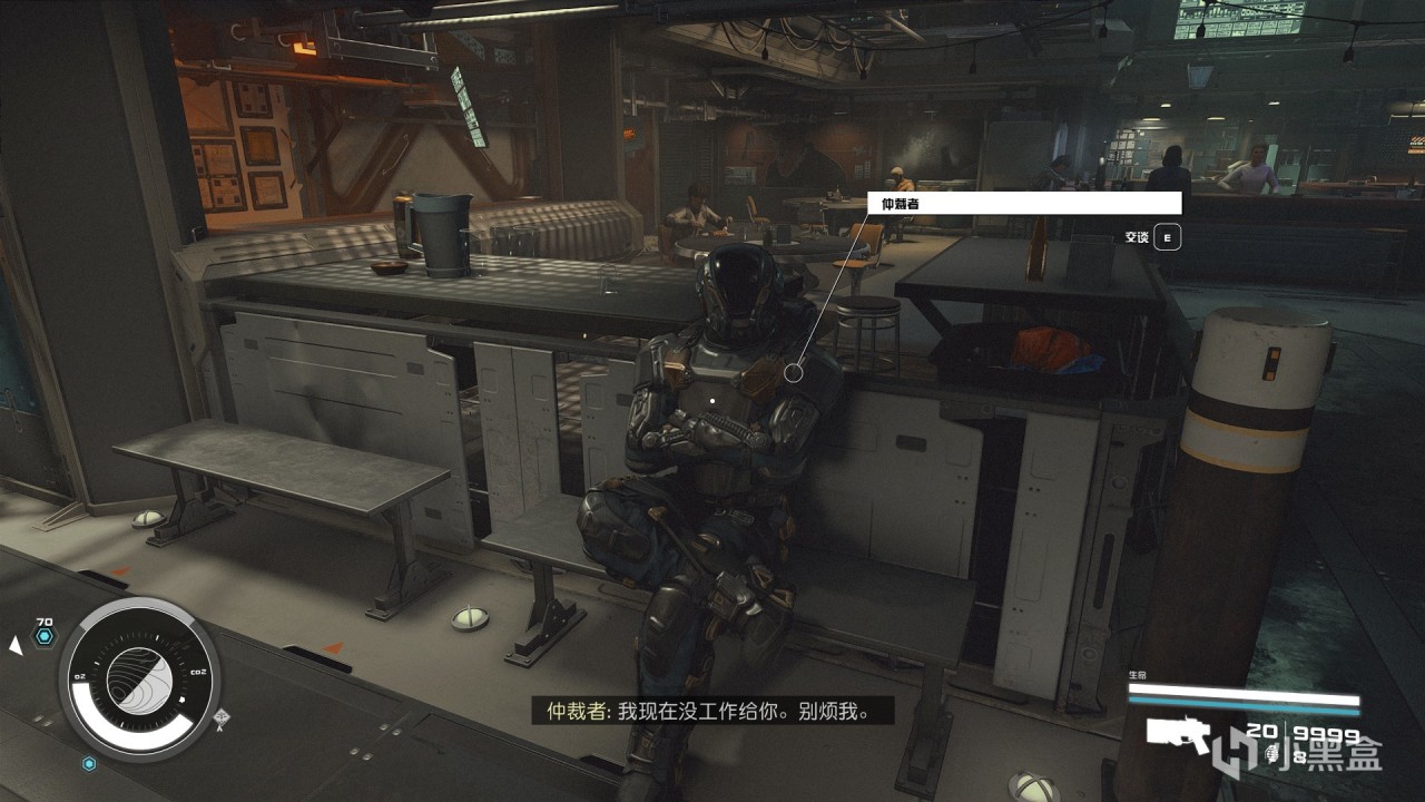 在轸宿三的“锚点”站,酒吧附近会坐着仲裁者,他每次出现的位置不固定,但一定会在酒吧。