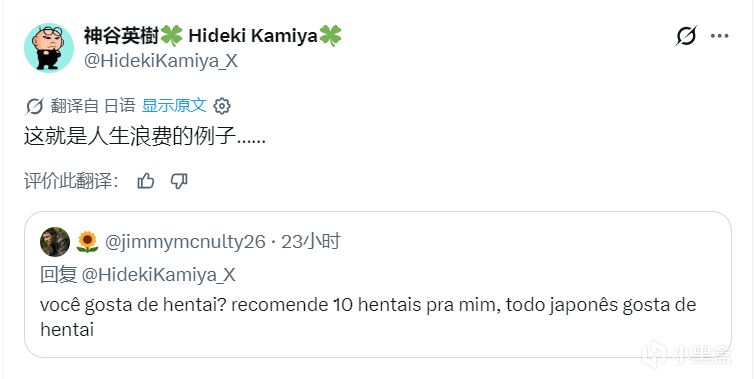 神谷英树直接回复道:“这就是浪费人生的典型例子......”