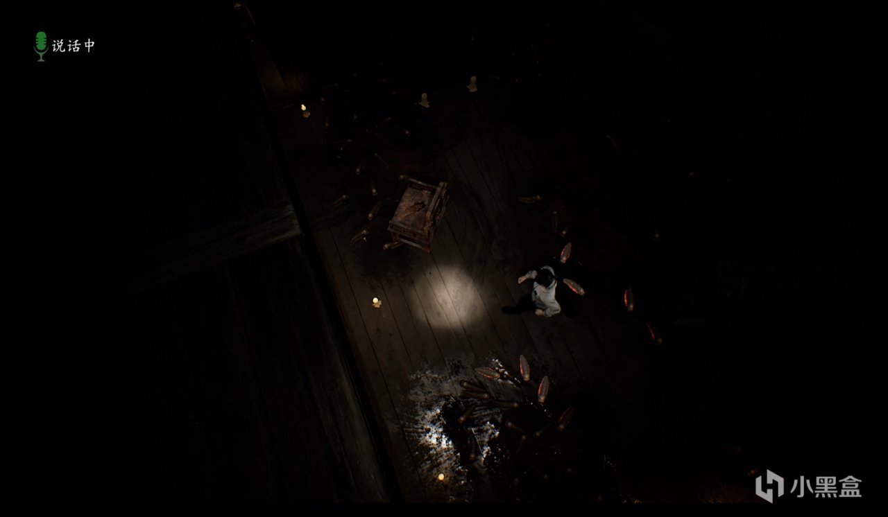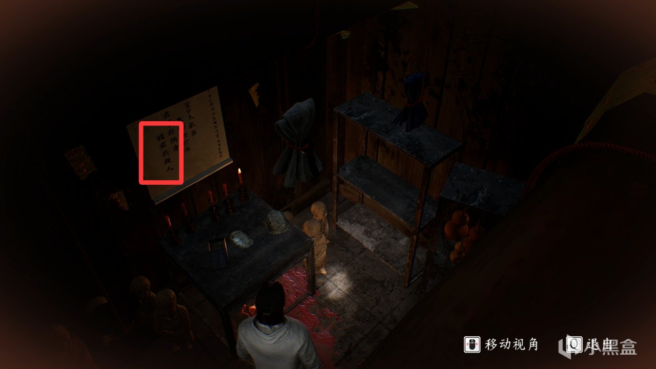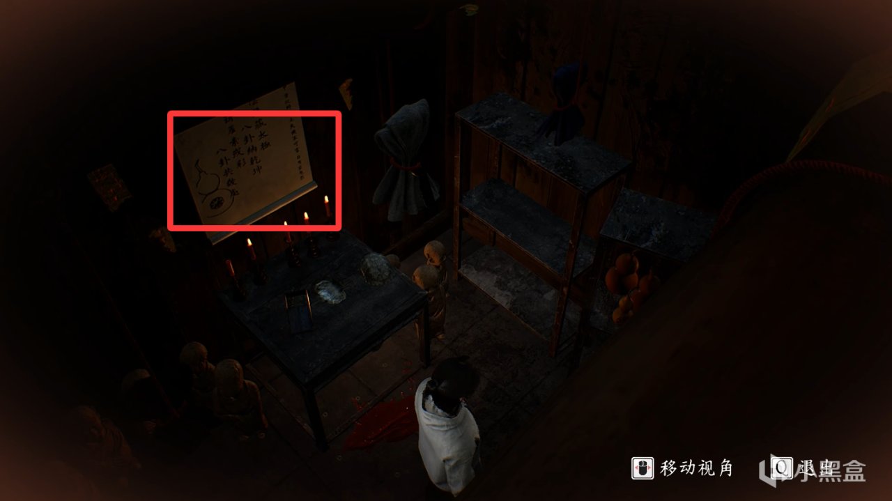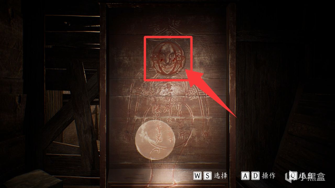 材料房的屋外視角有解謎的畫像,可以讓假人房間的人放好“頭飾+掛飾”