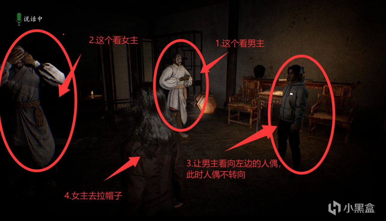 假人會始終朝向其中一人,先讓兩人來到後方,另一人看向對方的假人,然後假人捂眼睛,另一人再去拉帽子!