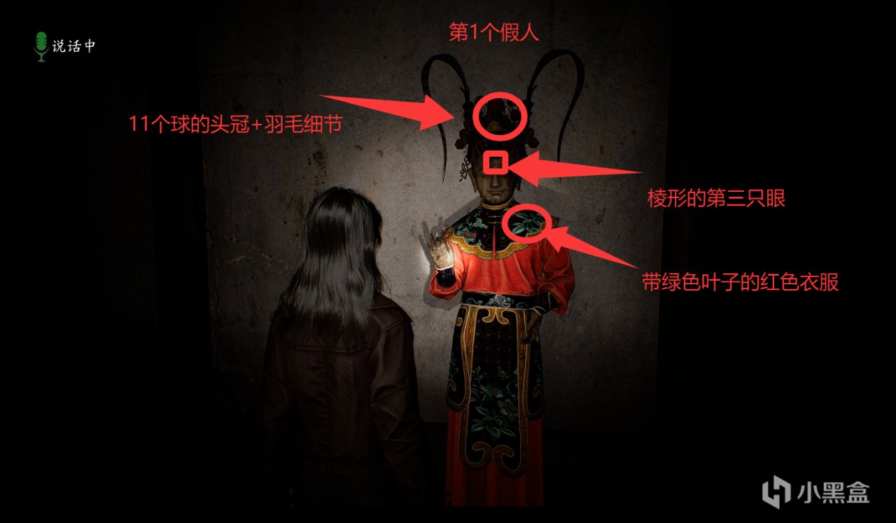 這關的謎題是在假人房還原妝容(頭飾+掛飾+口紅)共三個!
