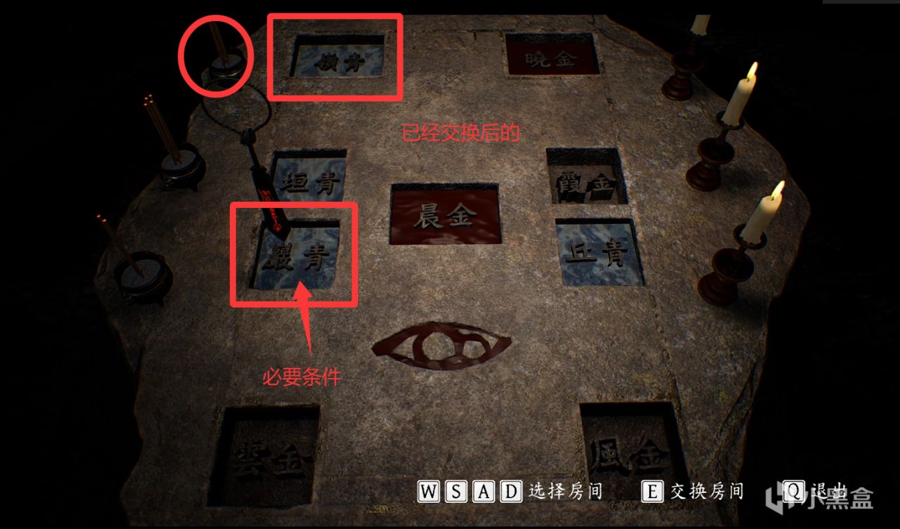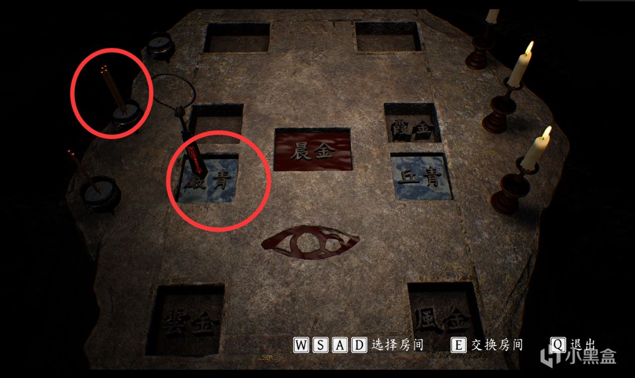此時,回去大廳,插上第三柱香,交換最左上角這個房間(一定要記得男主把青殿給過來):
