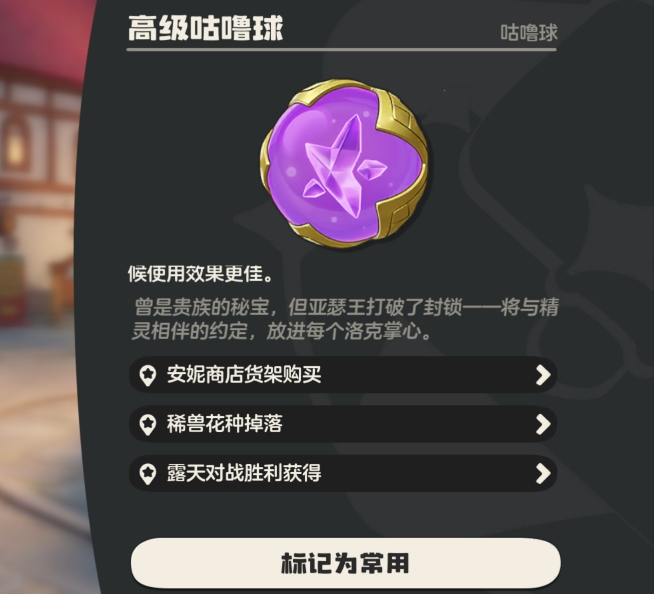小二碎碎念:普通球主要还是作为属性球的合成材料,中后期基本很少用了。高级咕噜球更万用一些。